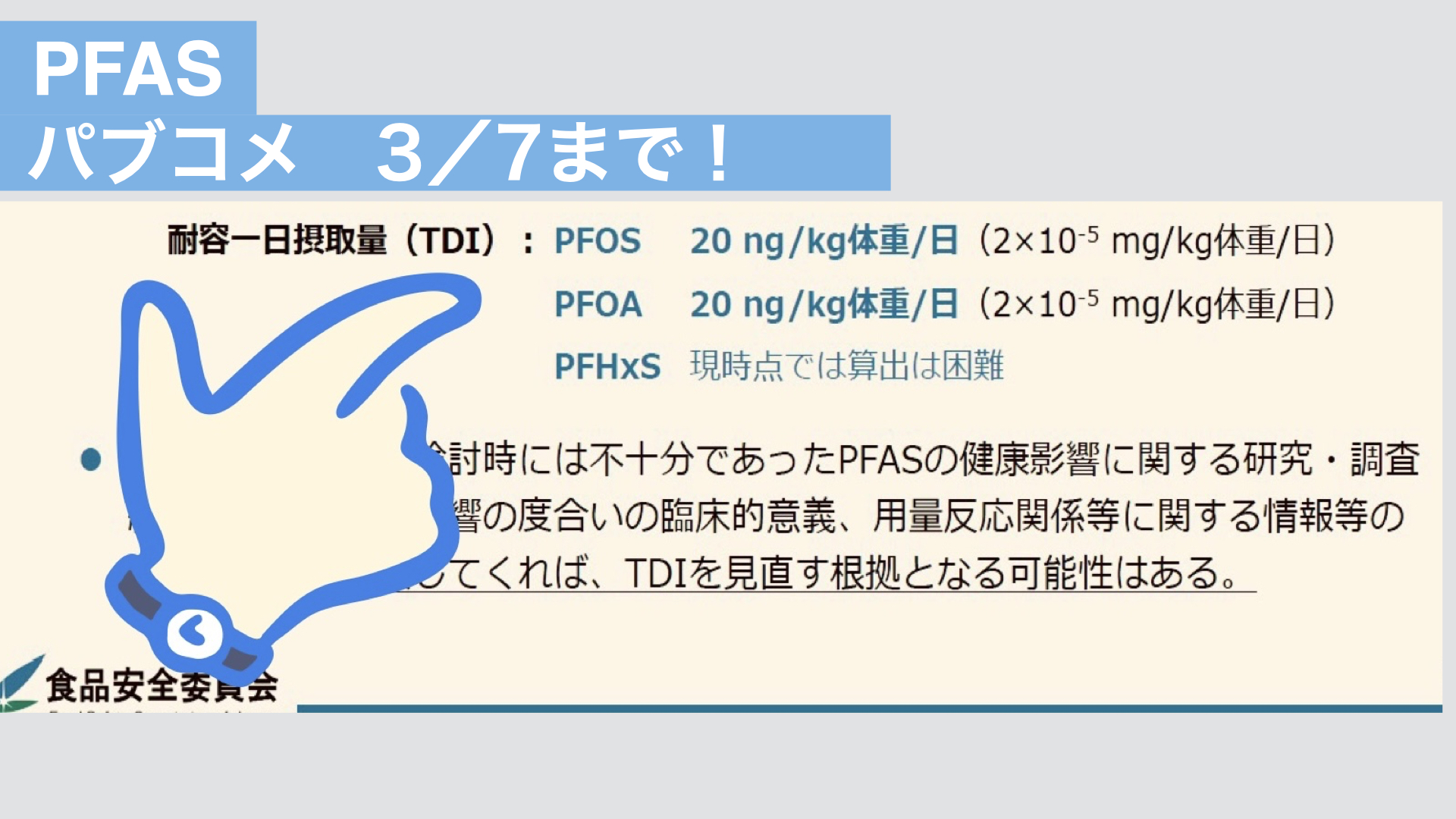 PFAS 食品安全委員会パブコメ 3/7〆切 2024.03.03