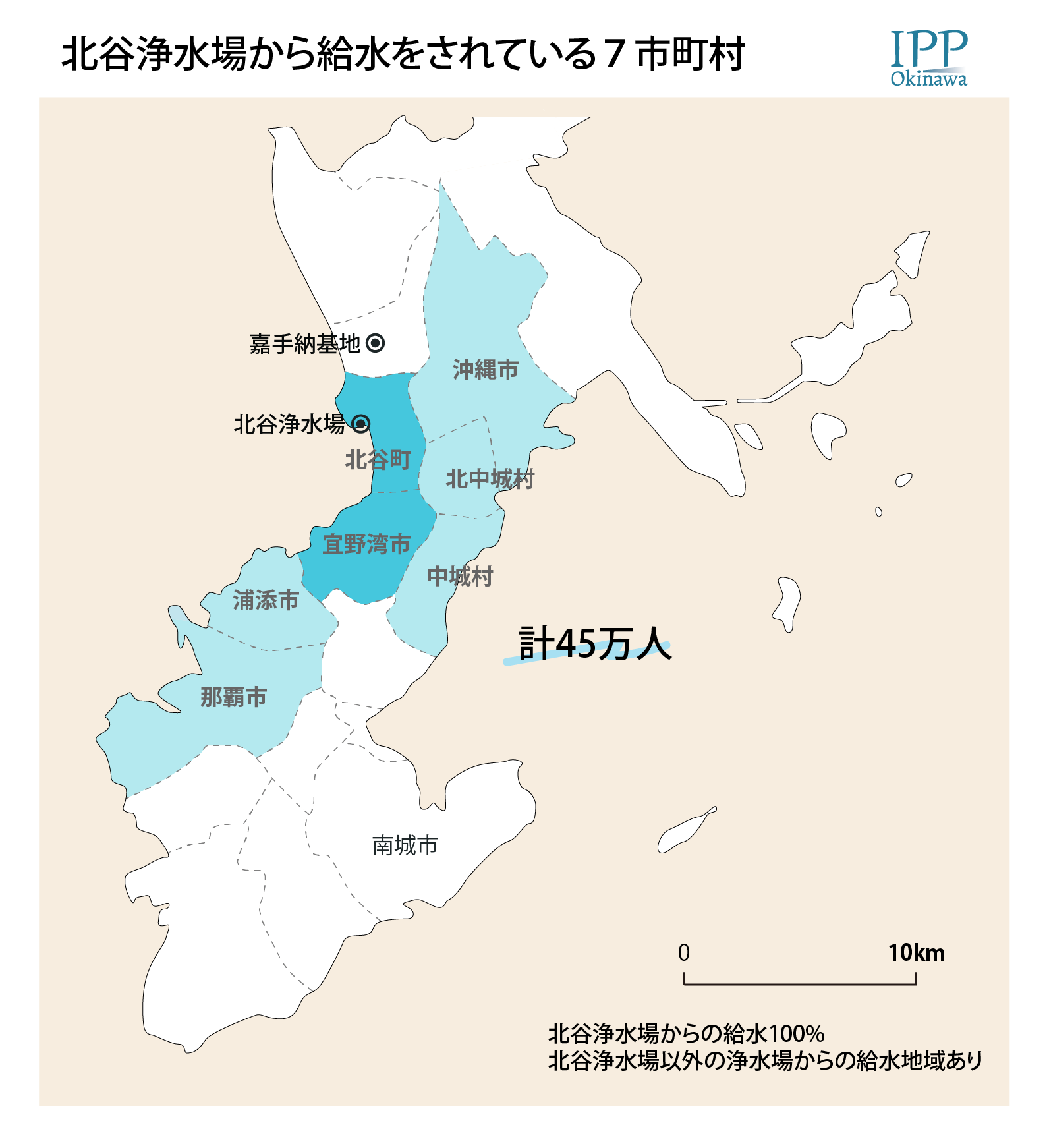 北谷上水道から供給を受けている7市町村